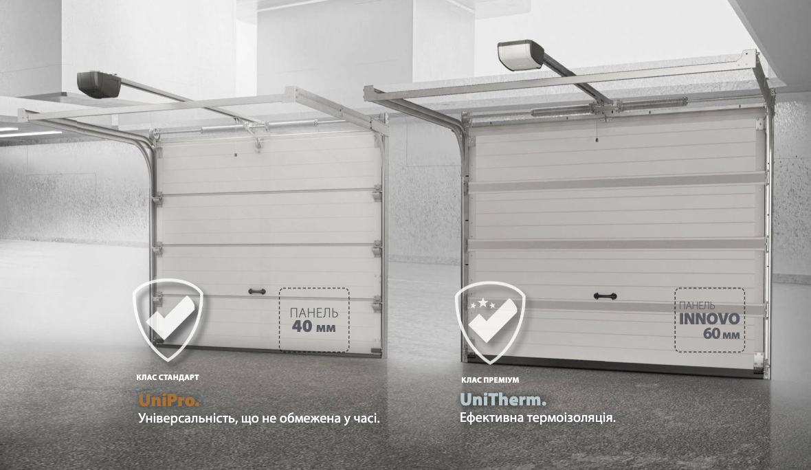Підйомні ворота на гараж UniPro: оптимальне рішення з товщиною стулки 40 мм